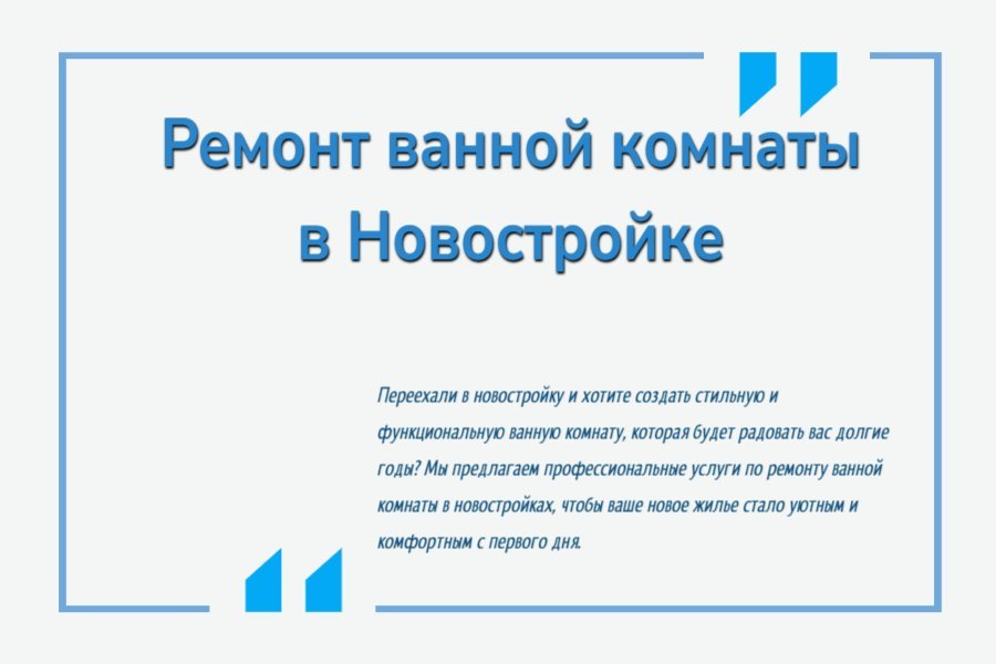 Переехали в новостройку и хотите создать стильную и функциональную ванную комнату, которая будет радовать вас долгие годы? Мы предлагаем профессиональные услуги по ремонту ванной комнаты в новостройках, чтобы ваше новое жилье стало уютным и комфортным с первого дня.